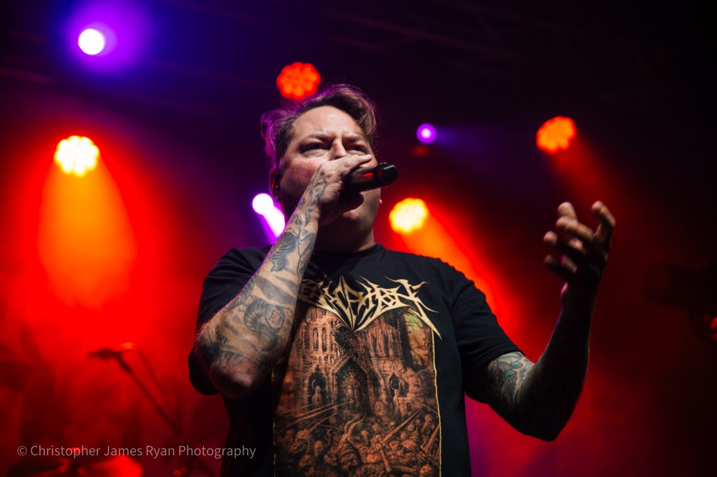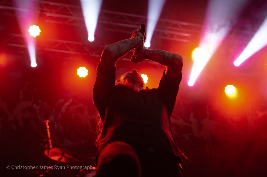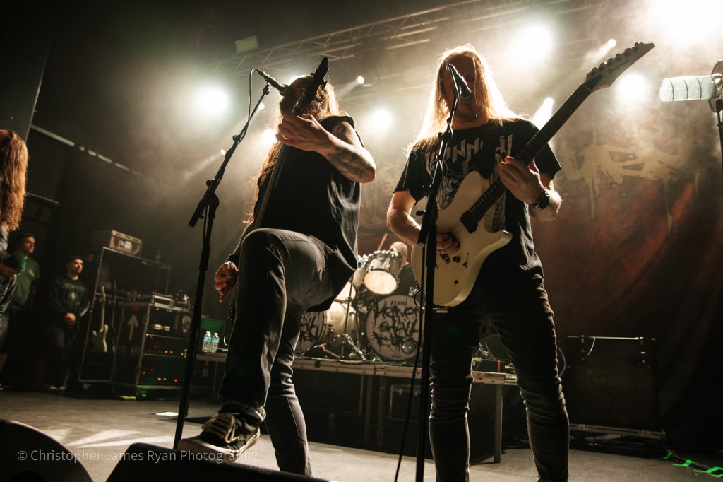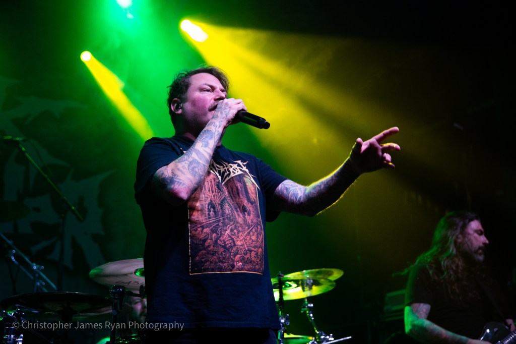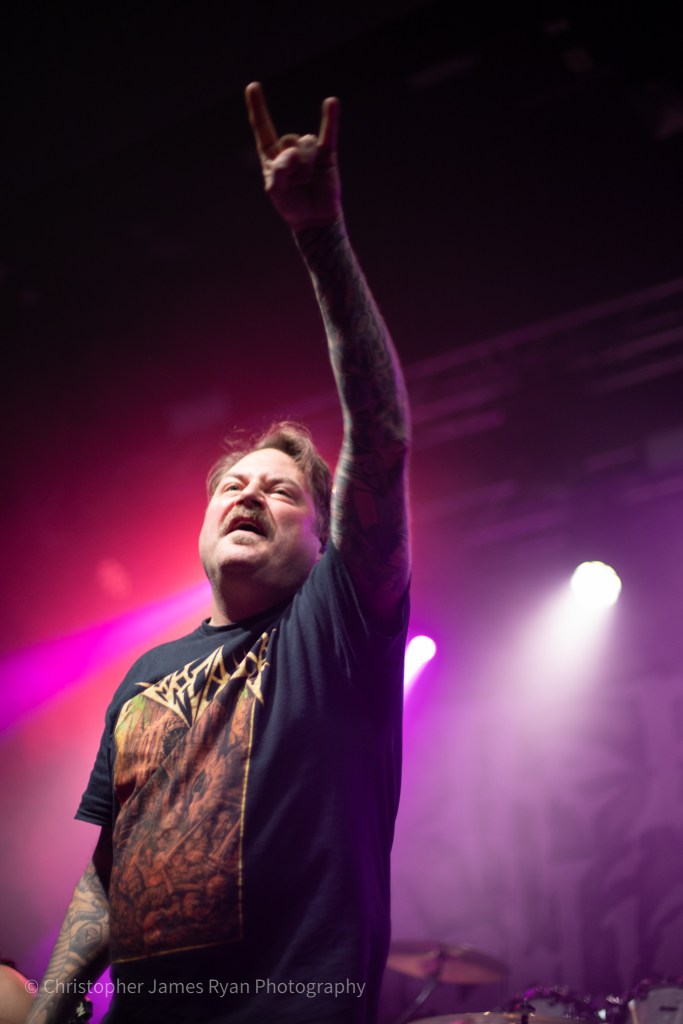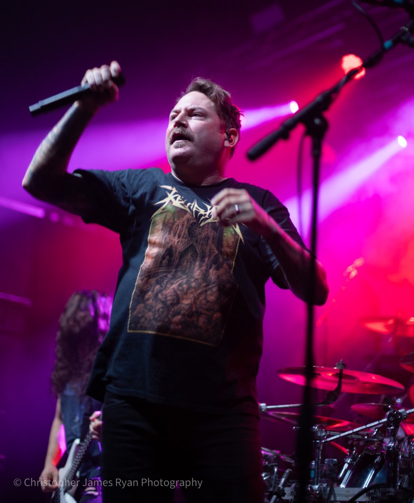 A large chunk of the set was focused on the latest album, Servitude, which makes sense considering those are the tracks that were made for new vocalist, Brian Eschbach. Brian has the connection to many of these songs through his tenure as rhythm guitarist but he still has the insurmountable task of following one of the best extreme vocalists to ever live, Trevor Strnad, but it seems like he’s coming into his own. Between the goofball antics between songs and his animated and emotive performances of tracks like Cursed Creator, it’s safe to say he’s improving and with time, will become a force to be reckoned with.