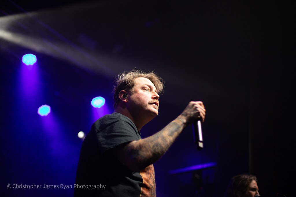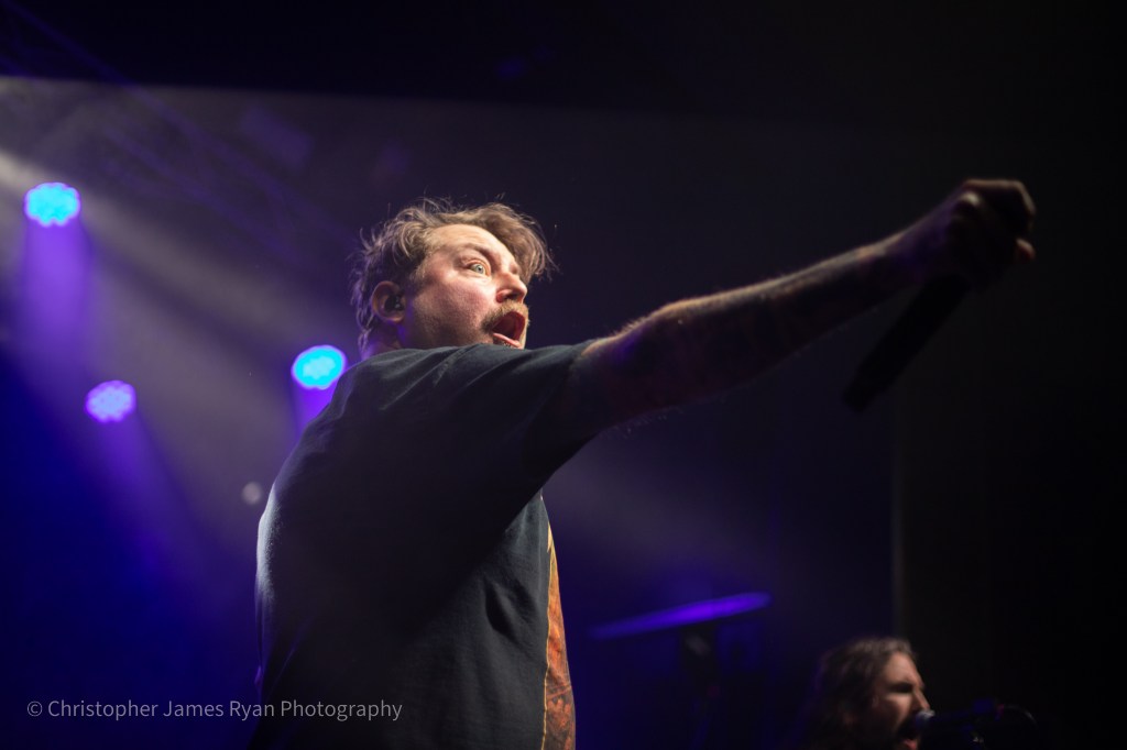 Heaven Shall Burn opened with the dramatic strings and pummeling drums of War is the Father of All, a particular favourite from their acclaimed new album, Heimat. The bass was incredibly high to start out but the Machine Head adjacent riffs and harmonic usage still cut through and brought some punishing brutality.