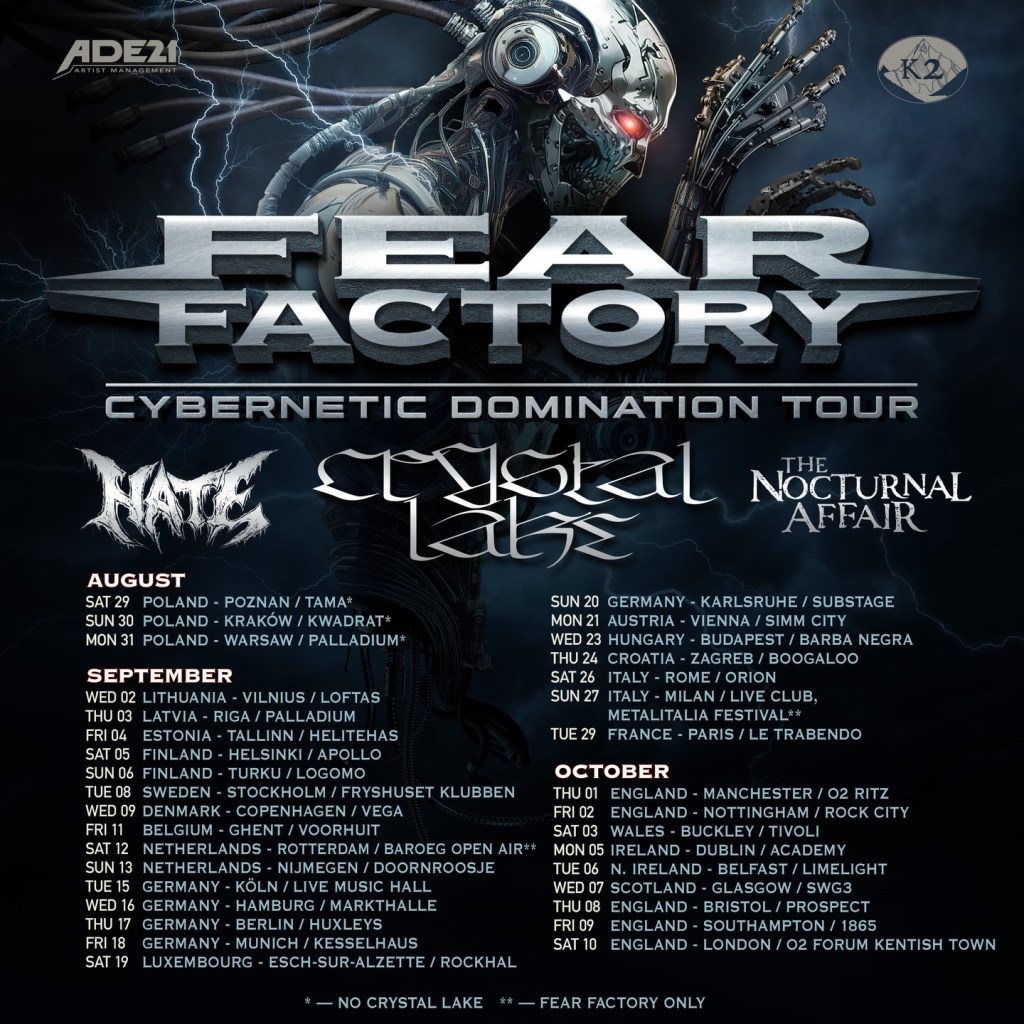 Fear factory are returning to europe and the uk this october for the “cybernetic domination tour”. They also are bringing out a heavy stacked bill with Hate, Crystal Lake and The Nocturnal Affair. Get your tickets here!