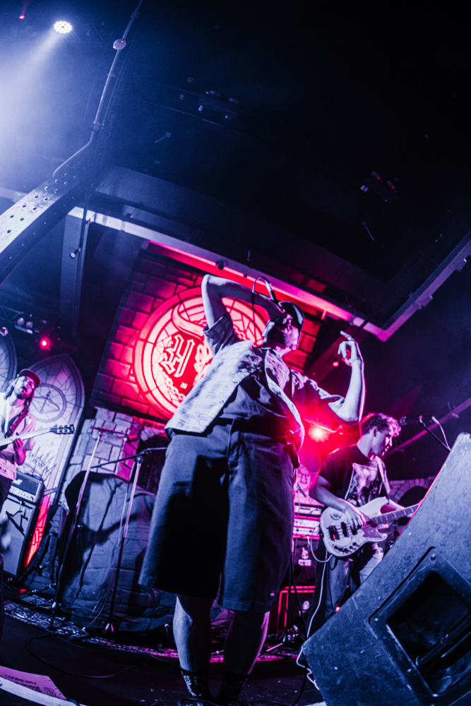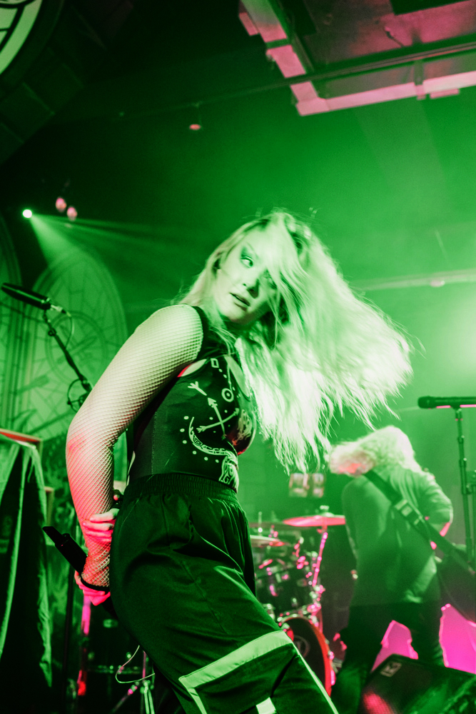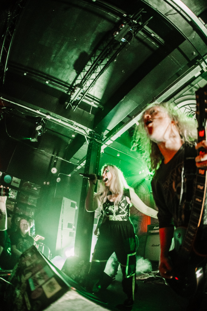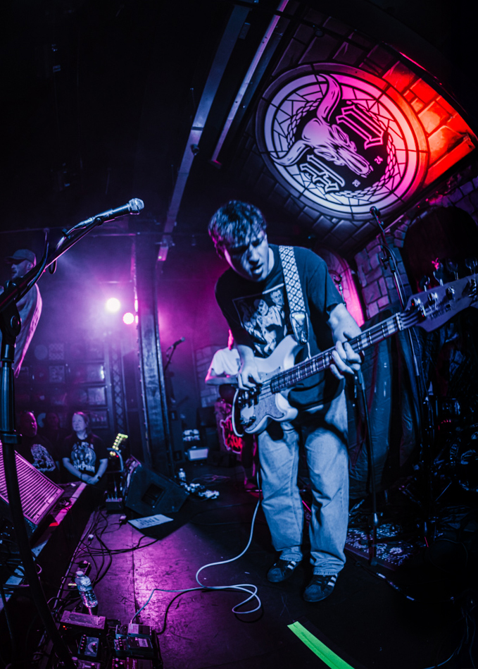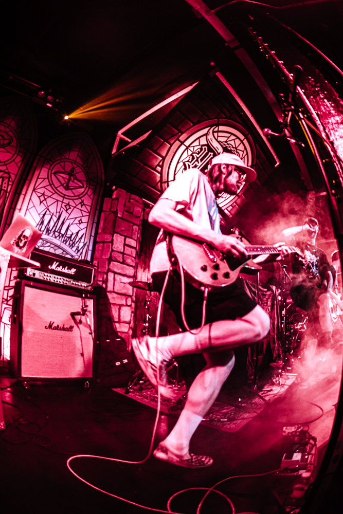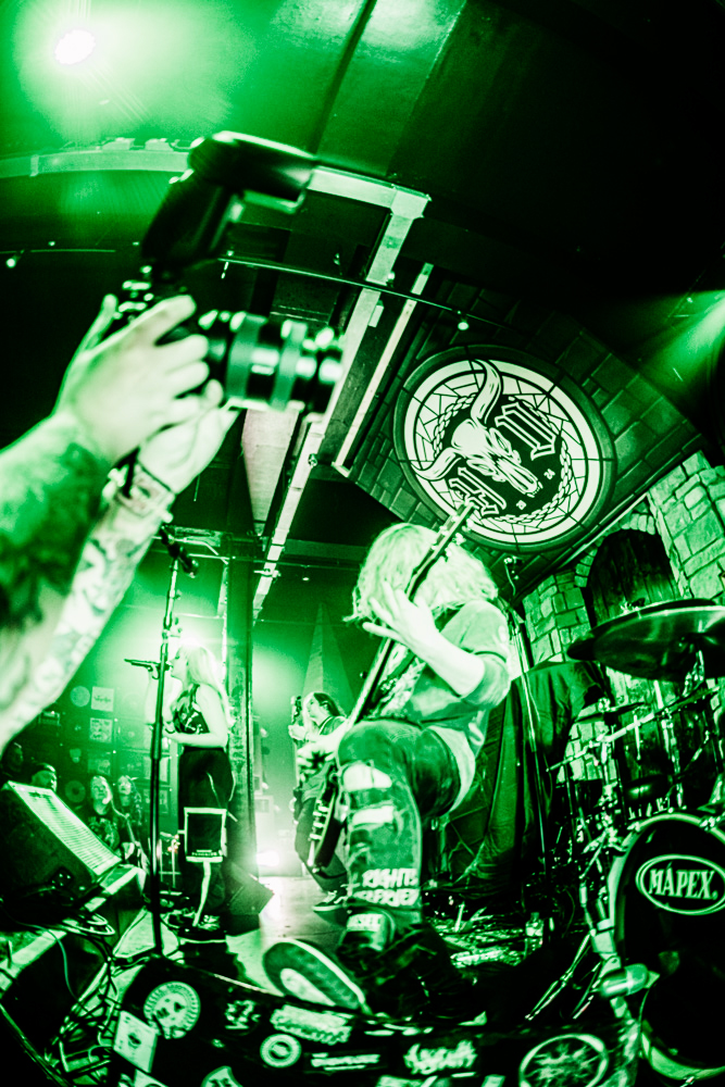Stockport on a Saturday night is a strange place to exist as a female alternative photographer, one minute you’re getting jeered at by roadmen, the next you’re in a rock music church-cum-dive bar venue that sells Limp Bizkit beer and has a giant stained glass Ozzy Osbourne faux window adorning the red neon-lit walls.