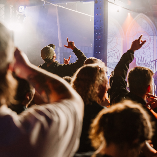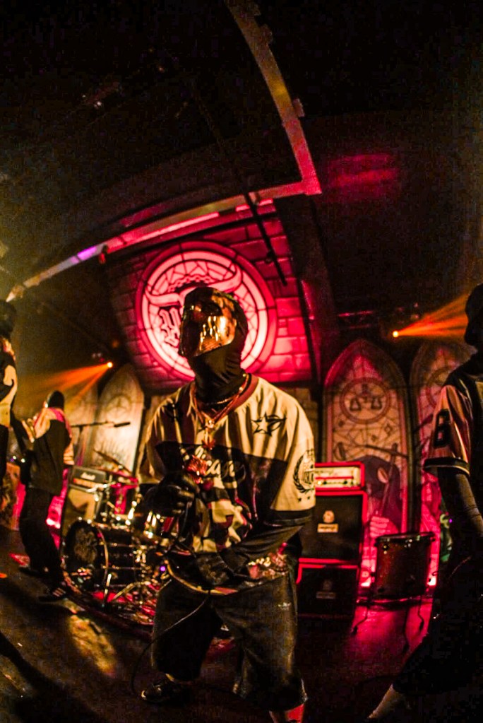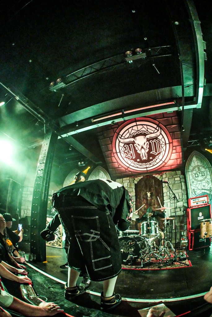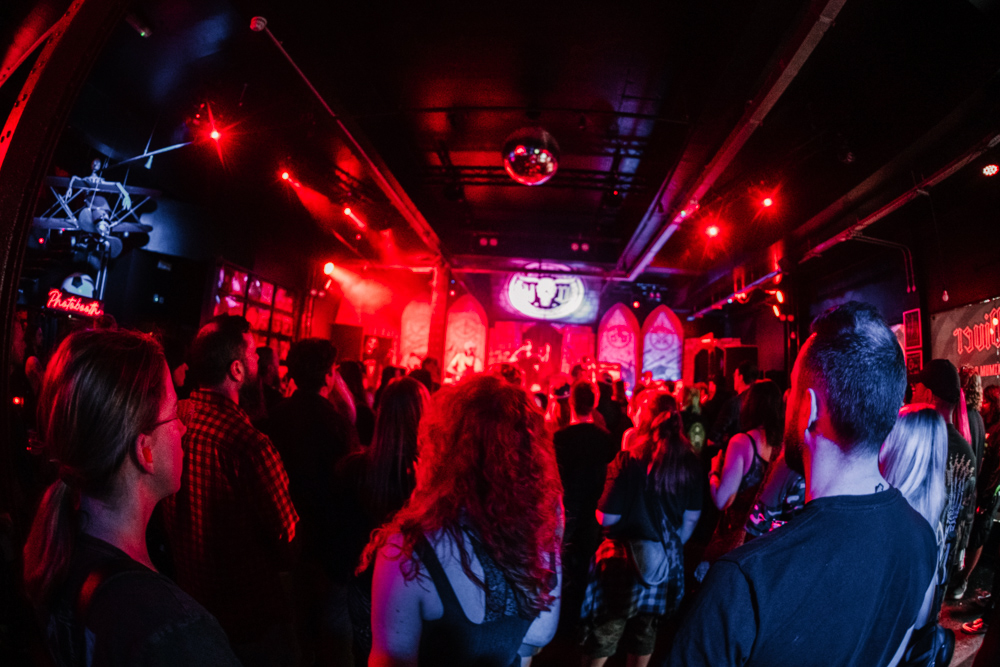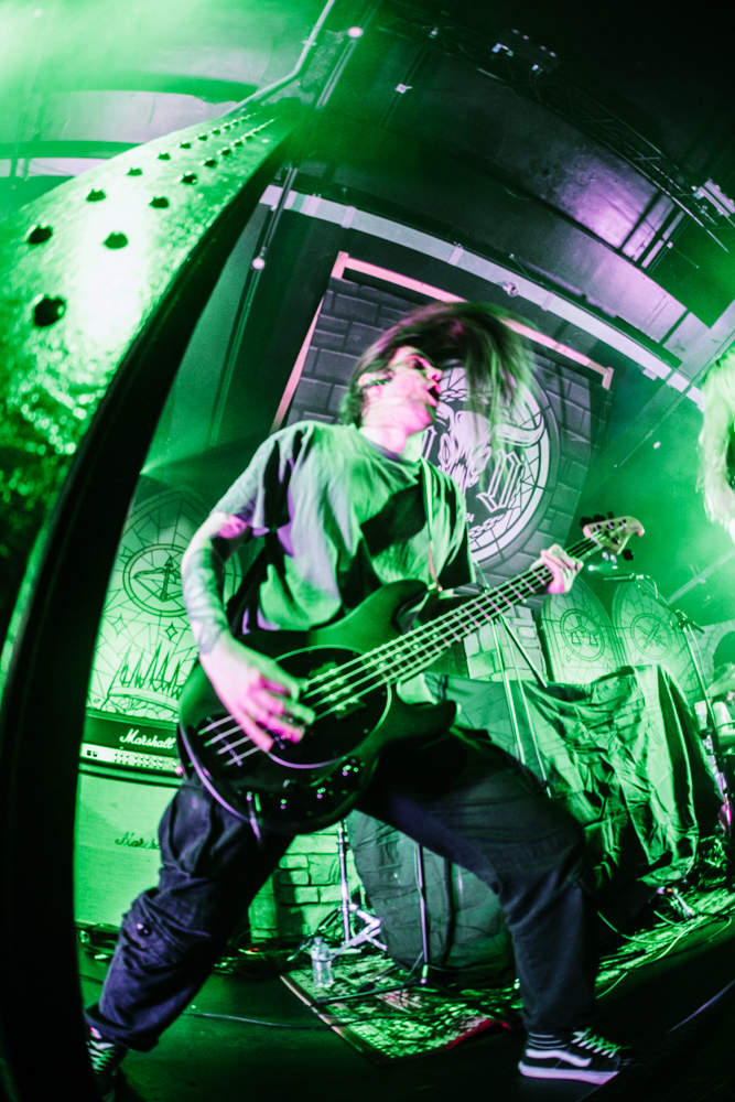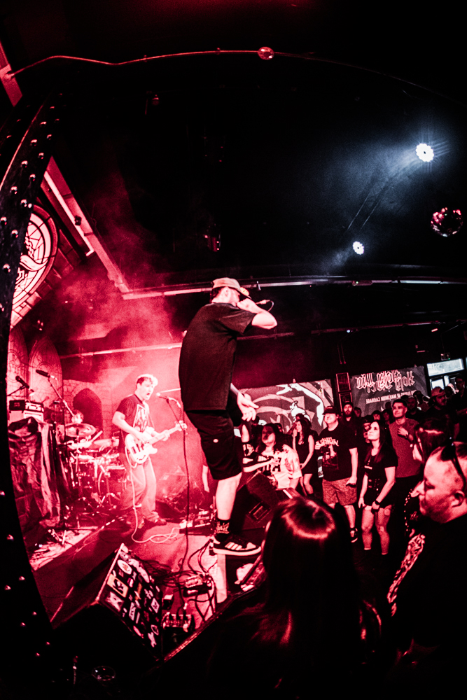 Stockport on a Saturday night is a strange place to exist as a female alternative photographer, one minute you’re getting jeered at by roadmen, the next you’re in a rock music church-cum-dive bar venue that sells Limp Bizkit beer and has a giant stained glass Ozzy Osbourne faux window adorning the red neon-lit walls.